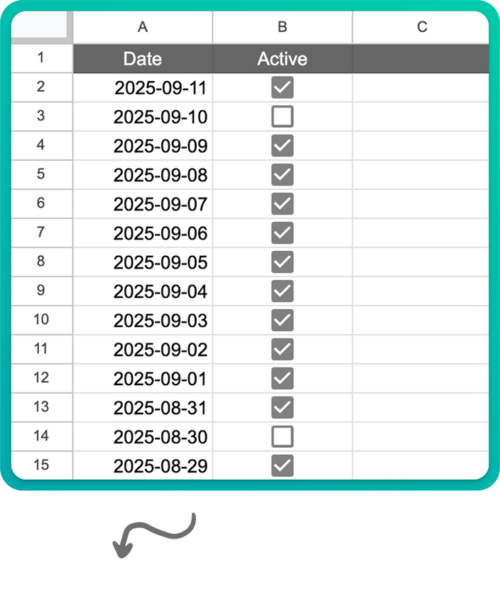 A website widget that displays a live heatmap of the year, from data in a Google Sheet